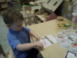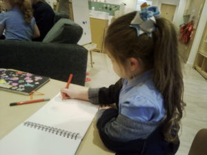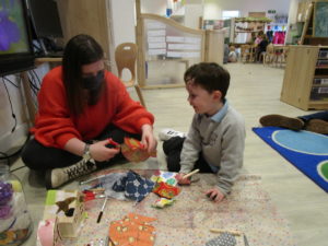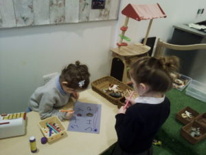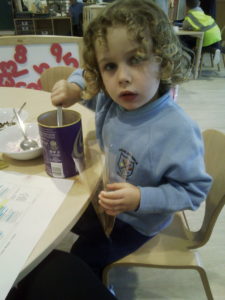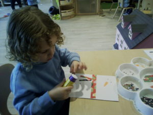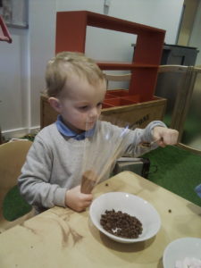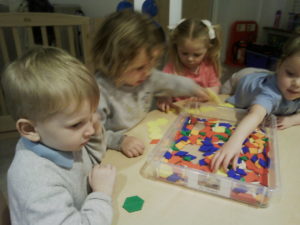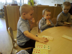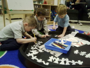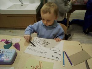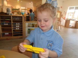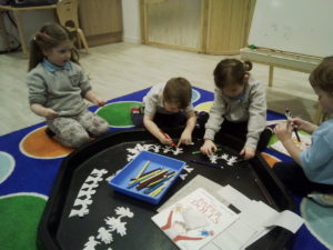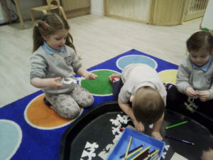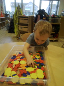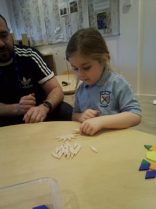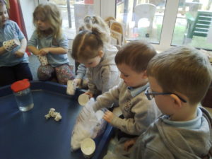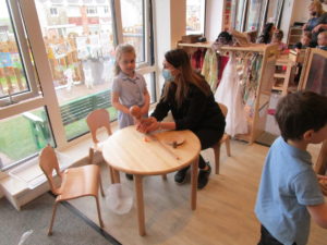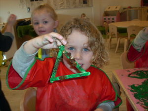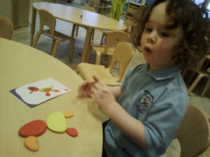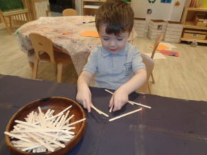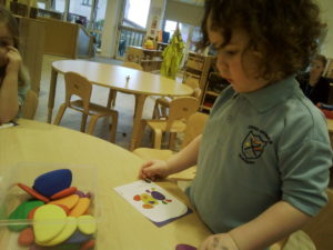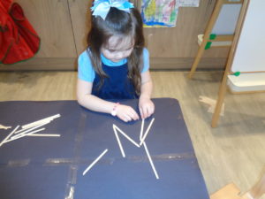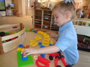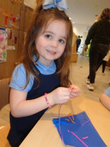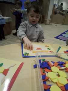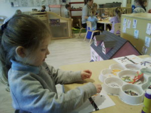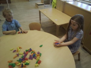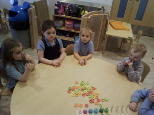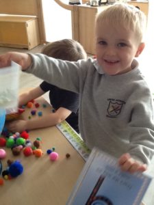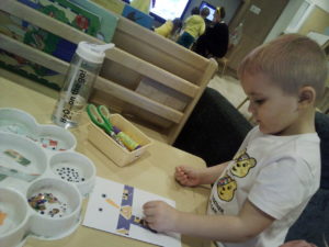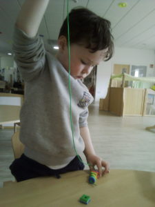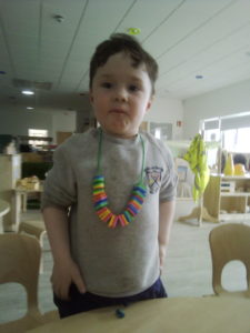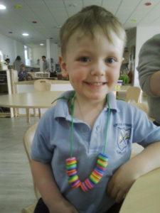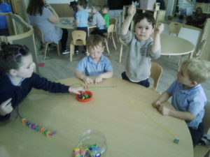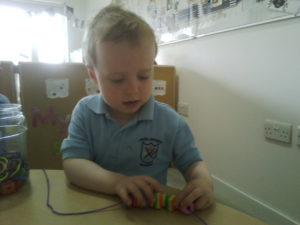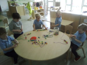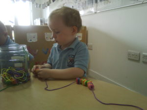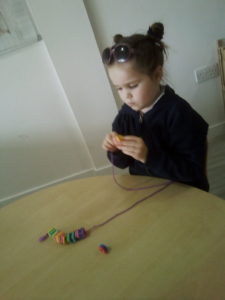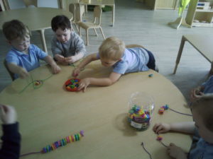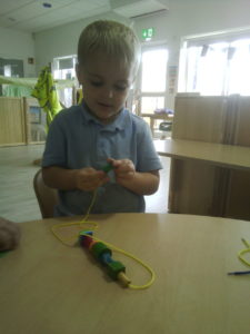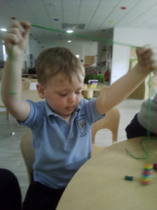 At first some of the children found it tricky to thread the string through the small hole in the beads, however as they persevered with the activity, their confidence grew and they built confidence in themselves.