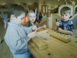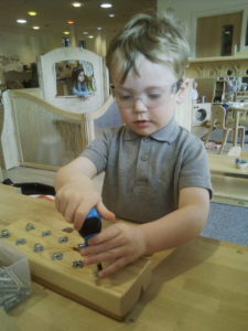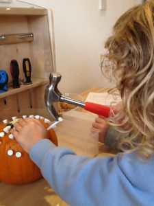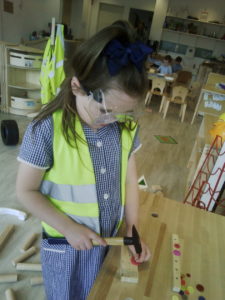 Using a hammer properly has many benefits for children. It develops hand-eye coordination, strengthens their hands which is especially important for writing later on, it teaches them the importance of safety and following rules and it helps to develop their persistence as they learn to master the skill.