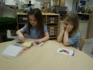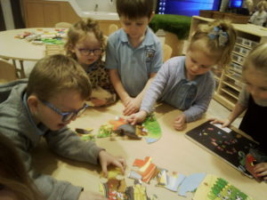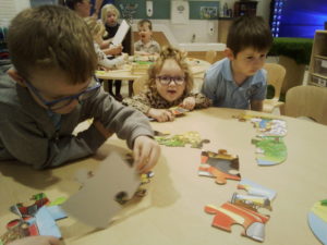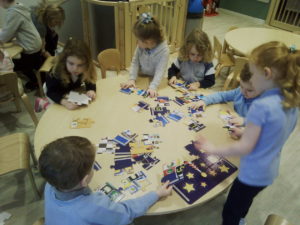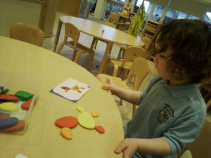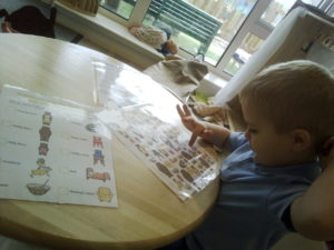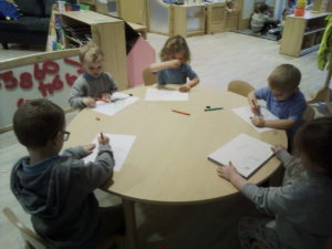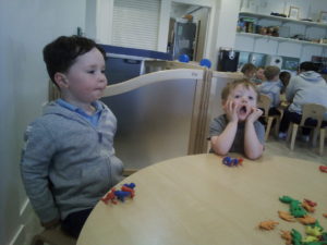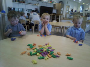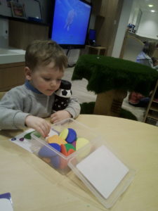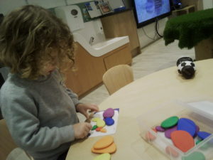 The purple group had fun learning about patterns. We used the coloured animal toys and I gave the children the challenge to replicate my chosen colour animal pattern. The children were required to choose the correct animals from the middle of the table and try their best to copy it. They made great attempts and progress with their patterns and this is something you could try doing at home with them too!