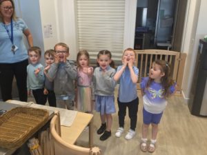 The children are continuing to take part in group time in the afternoon. They are all making great progress in their listening skills and also their turn taking and confidence skills.