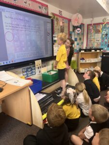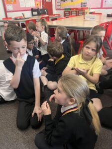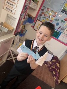 We have been reading the novel, This Morning I Met A Whale by Micheal Morpurgo. It explore the theme of our topic ‘Becoming Eco Friendly’ to celebrate completing the book we made origami whales! Great listening boys and girls!