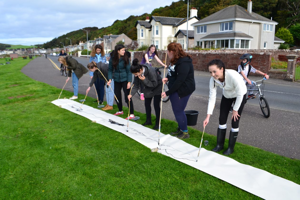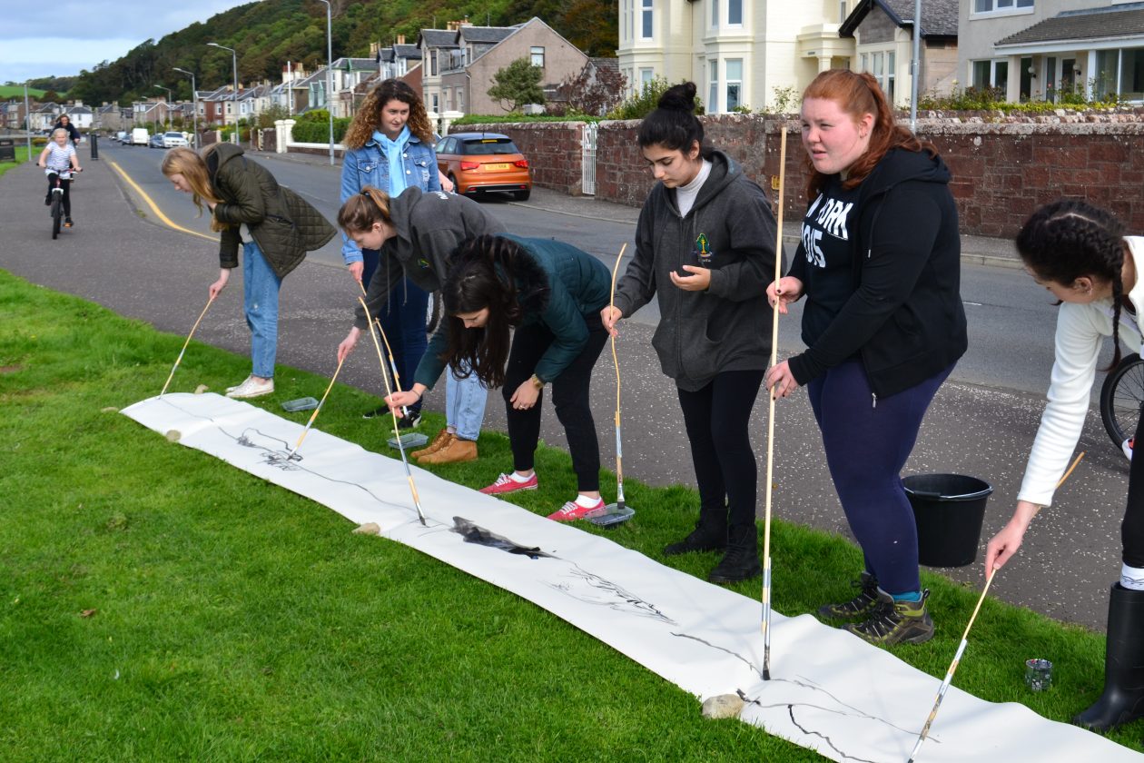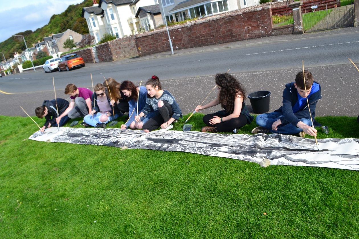 Twenty five Advanced Higher students enjoyed a fantastic residential weekend at FSC Millport in September. The students were working on Advanced Higher folio work , drawing, building photographing and responding to the wonderful natural environment to be found on the Island. Students all participated in sketchbook drawing, collecting natural found objects and even worked collaboratively on a 20metere landscape study of the main bay and surrounding Islets seen from the town. For some students, this was their first experience on the Island of Cumbrae and we hope that they had a fantastically rewarding and enjoyable experience.