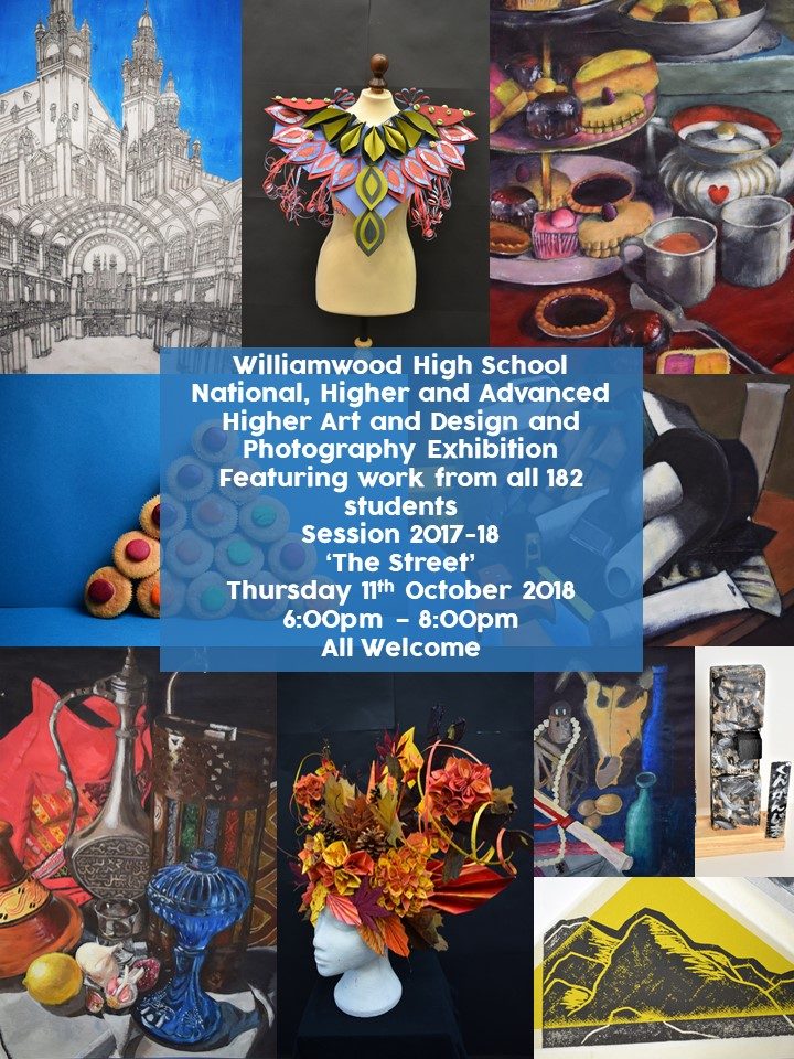 To celebrate the achievement and excellent standard of Expressive, Design and Photography work produced by last session’s cohort, this year’s exhibition will take place on Thursday 11th October from 6pm to 8 pm in the street. Light refreshments will provided on the evening. There will also be a chance to purchase this year’s calendar and a framed print should you choose to do so. We look forward to this celebration and hope to see you there.