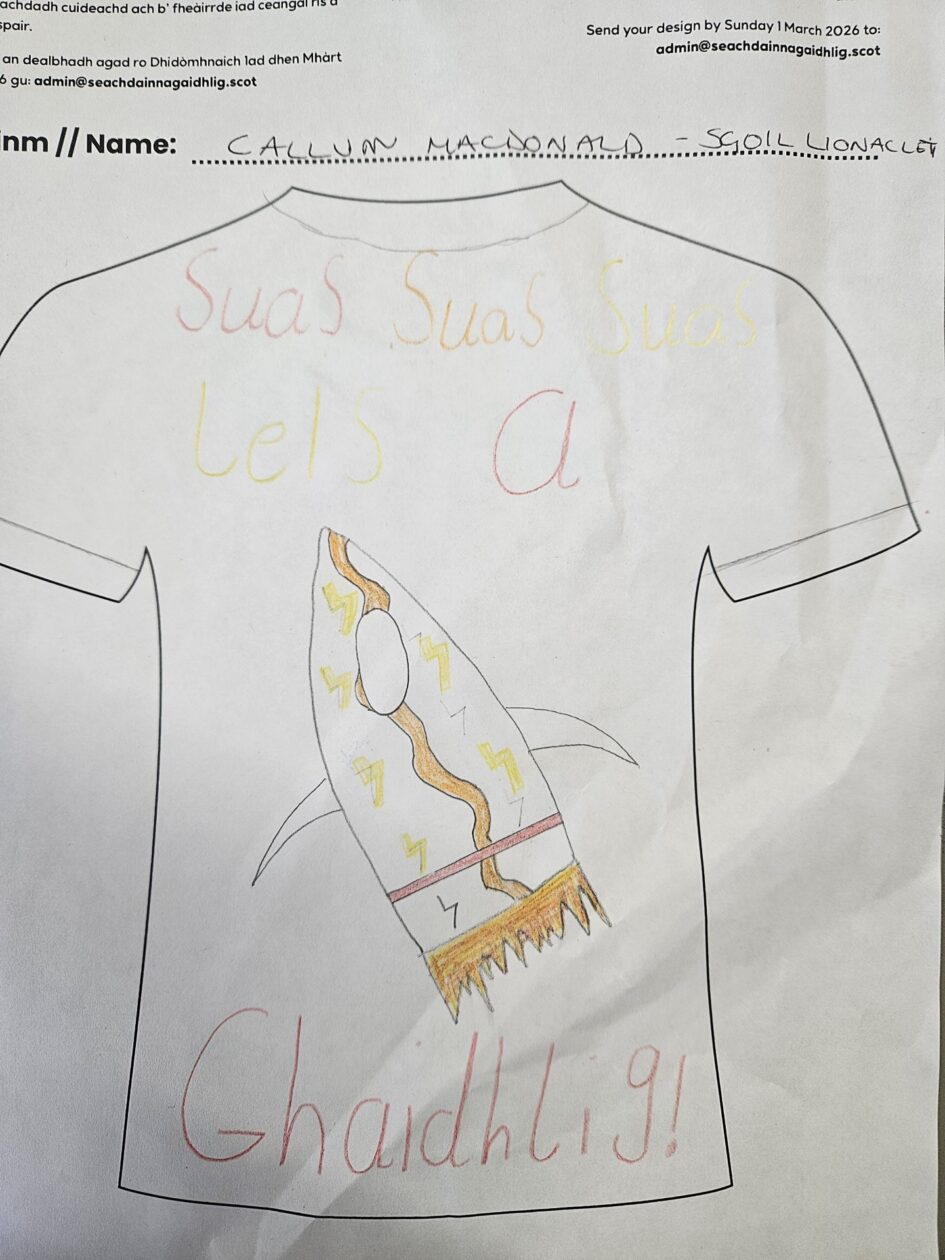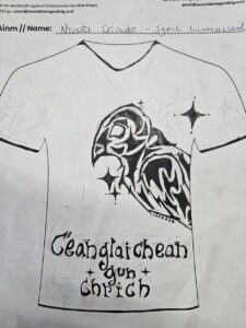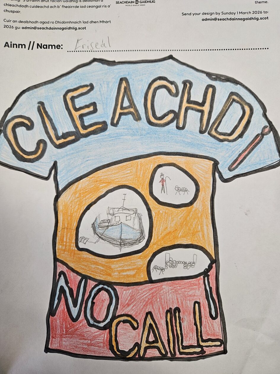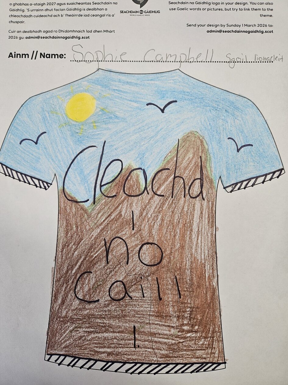 Ghabh sinn pàirt anns an fharpais nàiseanta airson lèine-t Ghàidhlig a dhealbhadh. Ged nach do bhuannaich sinn duais, chùm sinn am farpais againn fhèin san sgoil.