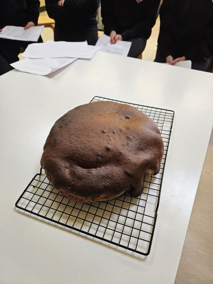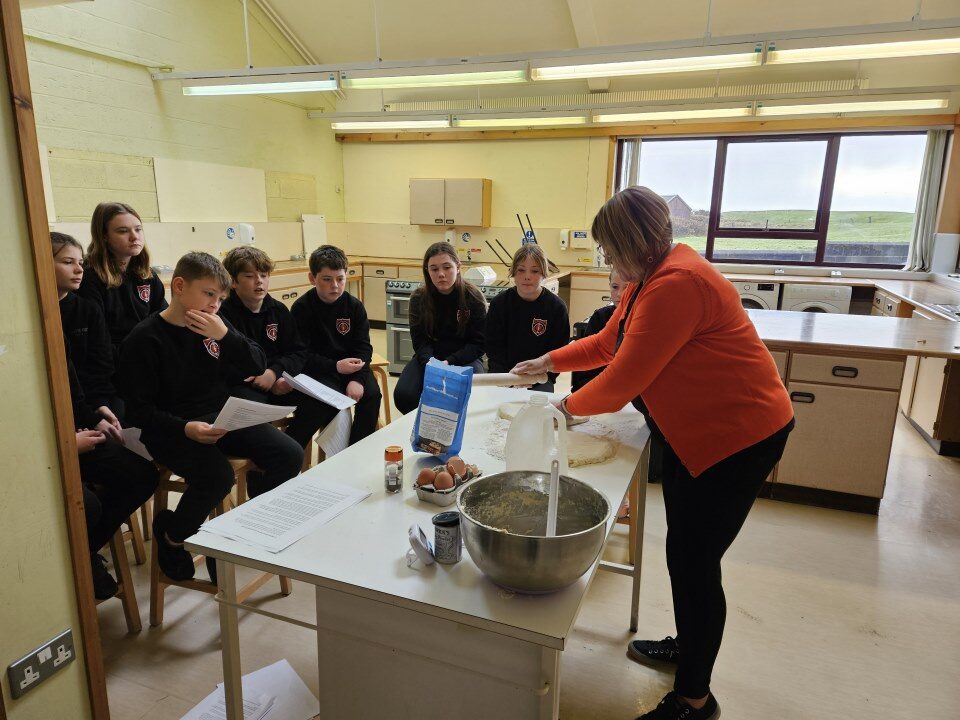 In order to mark World Heritage Week at the end of October, the S1 Culture classes were treated to a demonstration of how to make a Struan cake by local, expert baker Ann Marie Johnson. Struan cake is traditionally baked in communities in Uist at the end of September to mark the end of the harvest and it is considered a local delicacy.