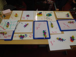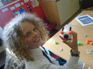 In the afternoon, we were learning about DNA, genetics and inheritance. We worked in pairs and were given male and female inheritance strips. The strips had codes on them; we followed the instructions to make our own Reebops.