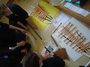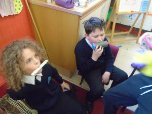 On Wednesday we were learning about sound. We were using tuning forks and a cup of water to demonstrate sound waves. Then we created our own instruments.