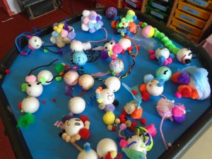 In the afternoon we made our own microbes, We classified some microbes and then created our own microbes using polystyrene balls and pompoms. We had a most unique microbe competition and we had to explain whether the microbes were helpful or harmful. We gave them a name and had to tell everyone how our microbe would be spread and what would happen if you came into contact with it.