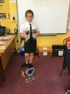 In the summer holidays Katie and her dog Bruno won the happiest dog 2019. They got a trophy and a rosette to go with it . This competition took part on the 7th of August.