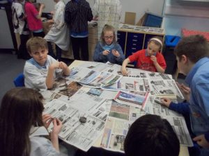 Here are some examples of the excellent art work produced by the pupils in P5-7E throughout our Stone Age to Iron Age topic.  We used a variety of different skills and techniques, clay to create stone age jewellery and stone arrow heads, oil pastels to create texture on our wooly mammoth observational drawings,  charcol and chalk to design our cave paintings, string and foam to create relief patterns on our bronze age beakers and axeheads and we worked in pairs to create 3D Iron age homes!!
