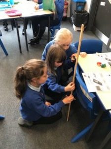 Ann a matamataig bha sinn trang ag ionnsachadh mu dheidhinn meatairean agus ceudameatairean. Bha sinn a’ tomhais le rulair agus le maide meatair.