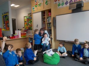 Bha torr ceistean again dha Jenna! Dh’innse i dhuinn mu dheidhinn mar a chuireas i Alasdair a chadal, mar a gheibh e biadh a botal, mar a chuireas i aodach glan air agus mar a chuireas i badan glan air cuideachd! Tha brathairean agus peathraichean beag aig cuid sa chlas agus bha iad gu math fiosrachail mu dheidhinn.