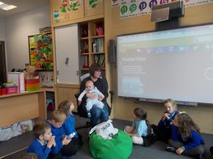 Bha torr ceistean again dha Jenna! Dh’innse i dhuinn mu dheidhinn mar a chuireas i Alasdair a chadal, mar a gheibh e biadh a botal, mar a chuireas i aodach glan air agus mar a chuireas i badan glan air cuideachd! Tha brathairean agus peathraichean beag aig cuid sa chlas agus bha iad gu math fiosrachail mu dheidhinn.