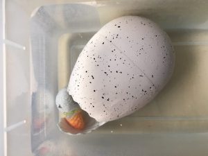I popped into school this morning to drop off some bits for next week! I was delighted to see Finlay’s puffin emerging from its egg so I took a couple of photos to show you all.