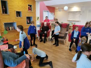 Bha sinn ann a Harris House a’ cluiche geamanan comhla ri na daoine a tha fuireach ann. Bha sinn a’ cluich geamanan eadar-dhealaichte agus a bruidhinn Gaidhlig ri feadhainn. Chaidh clas 7 ann cuideachd airson cuideachadh a thoirt dhuinn ach an ath thuras tha sinn a dol ann sinn fhein.