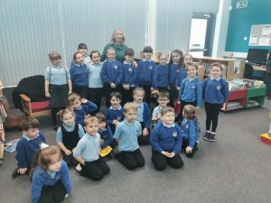 An uairsin chaidh sinn dhan leabharlann airson eisteachd ri Morag Anna NicNeill a leughadh stoiridh dhuinn. Bha a’ storaidh gle eibhinn agus fhuair clas 3 leabhraichean airson a thoirt dhachaigh, fhuair clas 4 iad an uraidh.