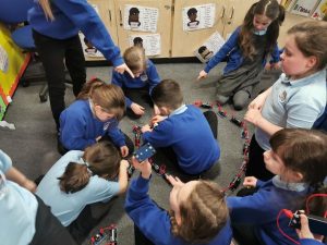 Tha topic ur againn, Beathaichean Fiadhaich Albannach. Mus do thoisich sinn air sin rinn sinn beagan a bharrachd obair air Dealain. Rinn sinn ‘Circuits’. Bha e sporsail!