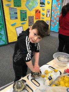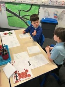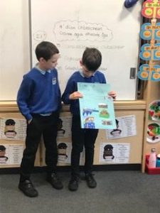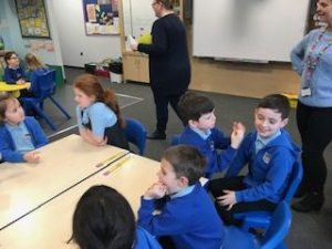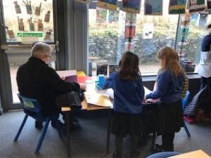 Thainig na brathairean aig Chirsty Bella a-steach a cheilidh oirnn. Bha sinn uile toilichte ga faicinn. Bha Alasdair trang a’ coimhead air a h-uile rud a th’againn anns a’ chlas.
