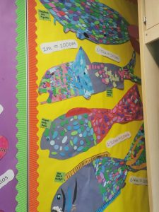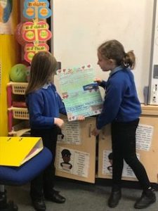 Bha sinn ag obair comhla airson postairean a dheanamh mu dheidhinn beathaichean a chi thu fon a’ mhuir. Chleachd sinn leabhraichean agus an eadar-lion. Bha faclan gu math doirbh anns na leabhraichean. Fhuair sinn a-mach torr rudan inntinneach!