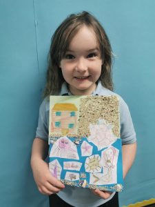 Bha Lois trang aig an taigh a’ deanamh dealbh alainn le peant. Bha sinn ag ionnsachadh mu dheidhinn doimhneachd na mara agus chaidh i dhachaigh agus rinn i dealbh a sealltainn na rudan a bha sinn a bruidhinn air!