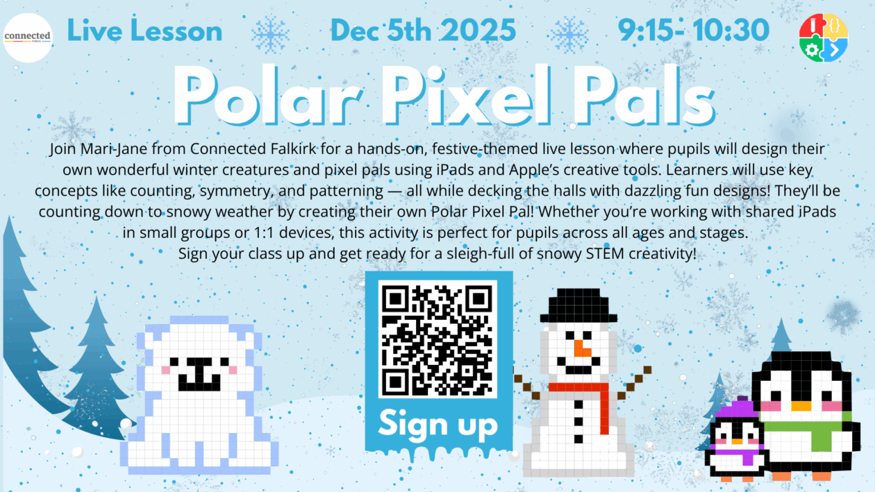 A massive thank you to everyone who took part in the Polar Pixel Pals Live lesson, or pre-recorded session. Over 300 pupils took part live on Friday 5th December 2025!