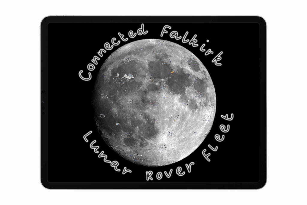 The completed Connected Falkirk Lunar Rover Fleet is hosted on the Moon! Each Rover has been stationed at different bases on the Moon, along with some other items to spot and find! We wonder what you will be able to see?