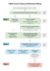 Falkirk Education has update pathway for assessment for children facing barriers to learning that significantly impact on their literacy and numeracy. The flow chart and the guidance document outline the process for assessing and then intervening to help children. some of the children may have dyslexia or dyscalculia and the document process guides you through this assessment process so that you can make a safe educational diagnosis.