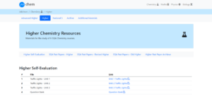 Higher Chemistry Back to School SQA Materials Higher and Advanced Higher Chemistry Data Booklet Higher Chemistry Course Content Higher Chemistry Past Papers and Marking Instructions Notes Booklets Higher Chemistry Unit 1, Part 1 – Chemical Changes and Structure Notes Higher Chemistry Unit 1, Part 2 – Chemical Changes and Structure Notes Higher Chemistry Unit 1, Part 3 – Chemical Changes and Structure Notes Higher Chemistry Unit 2 – Nature’s Chemistry Notes Higher Chemistry Unit 3, Part 1 – Chemistry in Society Notes Higher Chemistry Unit 3, Part 2 – Chemistry in Society Notes Higher Chemistry Unit 3, Part 3 – Chemistry in Society Notes Question Booklets Higher Chemistry Unit 1 – Chemical Changes and Structure Questions Higher Chemistry Unit 2 – Nature’s Chemistry Questions Higher Chemistry Unit 3 – Chemistry in Society Questions Answer Booklets Higher Chemistry Unit 1 – Chemical Changes and Structure Answers Higher Chemistry Unit 2 – Nature’s Chemistry Answers Higher Chemistry Unit 3 – Chemistry in Society Answers Past Paper Question Booklets Higher Chemistry Past Paper Booklet 1 Higher Chemistry Past Paper Booklet 2 Higher Chemistry Past Paper Booklet 3 Higher Chemistry Past Paper Booklet 4 Past Paper Model Answer Booklets Higher Chemistry Past Paper Answer Booklet 1 Higher Chemistry Past Paper Answer Booklet 2 Higher Chemistry Past Paper Answer Booklet 3 Higher Chemistry Past Paper Answer Booklet 4 Past Paper Topic Breakdown Higher Chemistry Past Paper Topic Breakdown BBC Bitesize Higher Chemistry Unit 1 – Chemical Changes and Structure Higher Chemistry Unit 2 – Nature’s Chemistry Higher Chemistry Unit 3 – Chemistry in Society Miss Adams Chemistry Higher Chemistry Unit 1 – Chemical Changes and Structure Higher Chemistry Unit 2 – Nature’s Chemistry Higher Chemistry Unit 3 – Chemistry in Society Martin McCartney Higher Chemistry Unit 1 – Chemical Changes and Structure Higher Chemistry Unit 2 – Nature’s Chemistry Higher Chemistry Unit 3 – Chemistry in Society Scholar (Glow Login Required) Higher Chemistry on Scholar JAB chem Higher Chemistry on JAB chem Achieve Higher chemistry on Achieve