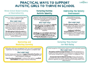 Help them thrive in school A helpful visual that provides practical ways to support autistic girls and help them thrive in school.
