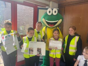 Frankie was in school today to visit and deliver the Fresh Air Frankie School Travel Plan Award. Please see some of the photos from our gathering where the entire school celebrated the success of this group of pupils for the good of our entire school community.