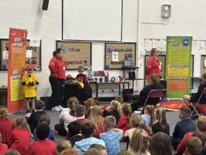 The RNLI Lifeguards were in school to update the entire school about water safety before the school summer holidays. See some of our pupils joining in their demonstration.