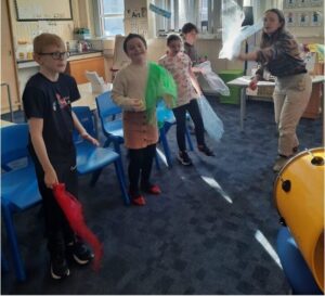 We have also been enjoying weekly music sessions with Kirstin from Drake Music. She teaches us about different instruments and we have been getting to play along to different songs.