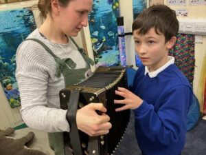 In Green Room, we have been lucky to have one of our partners – Drake Music completed a 6-week music intervention block with us every Friday morning. Our learners showed increased focused attention and exploration of the offering of instruments. During the sessions, our learners engaged in meaningful intensive interactions with all adults and demonstrated amazing awareness of others and different sounds around them.