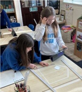 The class have been busy working on area and perimeter this term, as well as focussing on measurement, directions and symmetry. Children enjoyed measuring shapes around the classroom for perimeter as well as creating block versions of themselves and calculating the perimeter for this.