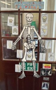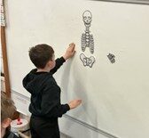 For science this term, we have explored body systems as well as our senses and what our body and mind does when certain senses are impaired. We have explored the digestive system, the respiratory system, circulatory system and the skeletal system. We had great fun building the skeleton (Dave) and labelling his bones. We also recreated the digestive system as well as models to show how the lungs work in our body.