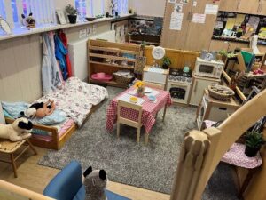 The staff have been developing our home corner and this is still ongoing in the room. They have been working hard on making it more attractive and inviting to encourage rich role play and use of imagination. This is a vey popular area in the nursery and is well used by all children. Here are some photos of our new look home corner: