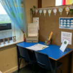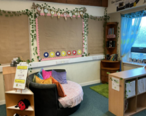 Our reading corner and writing area where we like to relax with a book or carry out activities that can help us to improve our writing skills.