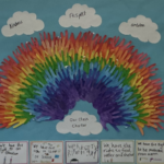 We made our class charter at the start of term after discussing the Rights of the Child and voted to make a rainbow from all our handprints. The charter shows our school values and highlights five articles that we feel are important.