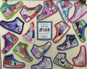 Our personalised ‘sneakers’ display that ties in with our novel and demonstrates that although we are all different, we can walk our learning journey together.