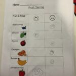 We discussed what they smelled and tasted like and came out with some WOW describing words such as “sour”! We then drew a happy or sad face beside the fruits that we liked or didn’t like.