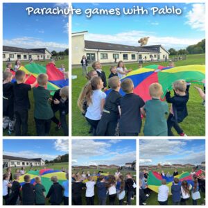 Primary 3 and 4 were using Pablo and his parachute to practice their Spanish colours and greetings.