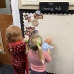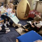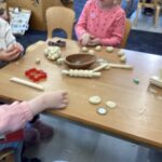 Today some of our children created a bakers shop at the dough table. Whilst discussing the job of a baker they made a variety of cakes and sausage rolls. We added some coins to the bakers shop so the children can explore money and its purpose. A few of our children chose to explore various types of print in our story corner including their PLJ’s and floor books. This created lots of discussion and development of vocabulary and language skills. Outdoors today lots of our children explored our new bikes developing gross motor, and turn taking skills.