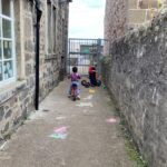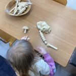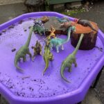 Lots of role play both indoors and outdoors today with the dolls house and the dinosaurs. Children arranging furniture and figures to replicate scenarios from home, creating a ‘dinosaur land’ using vegetation and logs from the garden – representing, and sharing, their ideas through imaginative play whilst developing their sharing/turn taking and language skills using a wide and varied range of vocabulary. Using a variety of containers some children added water to the tuff tray in the garden. They then explored/experimented how big a splash they could make! Some children discovered they could see their reflection in the water creating lots of discussion and experimentation by seeing what else they could see in the reflections e.g. clouds etc.