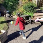 Outdoors, using our gross motor skills and hand/eye coordination, we explored a variety of ball skills e.g. kicking, throwing, catching and rolling.