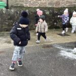 We have been excited by the colder weather today & have been exploring with ice in the garden we have been looking at the ice through the magnifyed glass looking at the different patters. The ice also sparked discussion about safety & how we keep ourselves safe. In the room we have being creating at the woodwork bench using hammers & vice. Some fantastic creations have been made where some of the children decided to extend their models by adding paint to them.