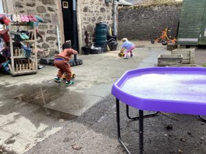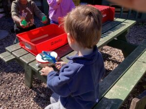 Today lots of us played outdoors in the sunshine, on the bikes are scooters, or climbing on the wooden cubes, practising balance.