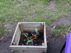 Next we noticed the strawberry plants that Mrs Cameron brought in. We talked about the best place in the garden to plant them.