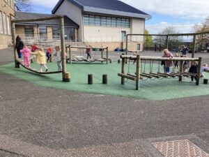 This morning was gym. We had ring games followed by time on the Trim Trail in the playground. We had fun exploring the new equipment and investigating all the different areas of the playground.