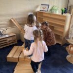 Some of the children were dancing to music that was on the smart board, they decided to build a stage with blocks to showcase to their peers. The play changed to building the blocks higher to allow them to jump from. All of the children supported & encouraged each other when jumping. Great teamwork building, then tidying them away.