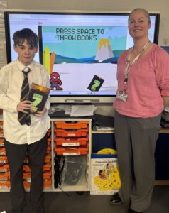 Z has coded a computer game featuring books that are the favourites of the SLD team. Miss Black was delighted to see Level 7 featuring which she first read at High School. Bringing different curricular areas together to create a fantastic piece of work, amazing job Z!